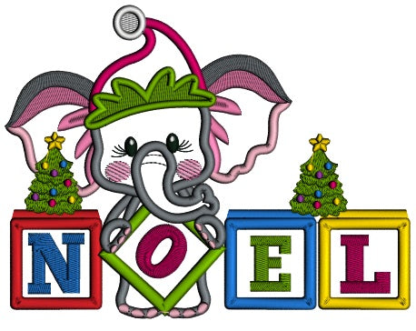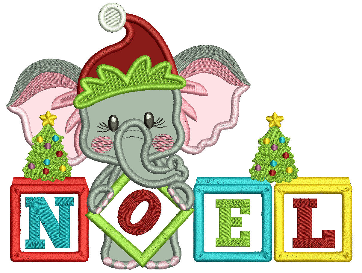 NOEL Elephant Wearing Christmas Hat Applique Machine Embroidery Design Digitized Pattern