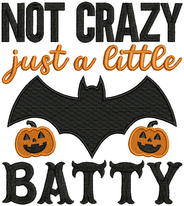 Not Crazy Just a Little Batty Halloween Filled Machine Embroidery Design Digitized Pattern