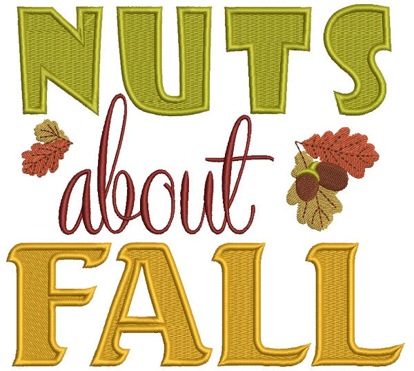 Nuts About Fall With Leaves Filled Machine Embroidery Design Digitized Pattern