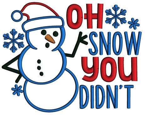Oh Snow You Didn't Snowman Christmas Applique Machine Embroidery Design Digitized Pattern