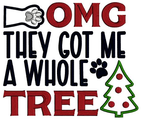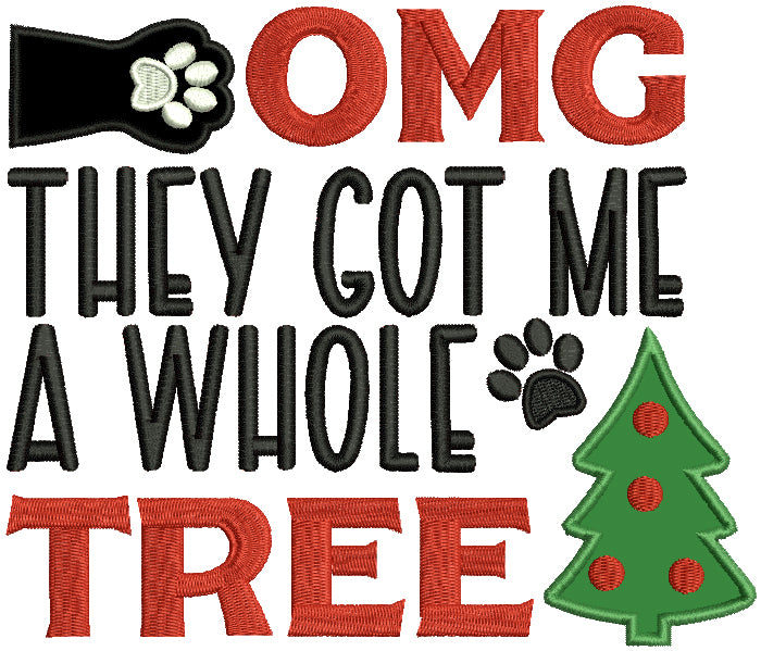 OMG They Got Me a Whole Christmas Tree Dog Paw Applique Machine Embroidery Design Digitized Pattern