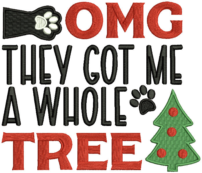 OMG They Got Me a Whole Christmas Tree Dog Paw Filled Machine Embroidery Design Digitized Pattern