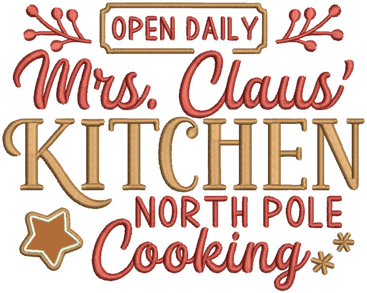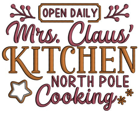 Open Daily Mrs. Claus Kitchen North Pole Cooking Christmas Applique Machine Embroidery Design Digitized Pattern