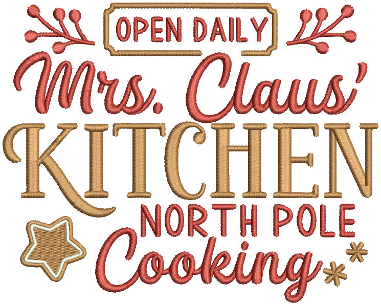 Open Daily Mrs. Claus Kitchen North Pole Cooking Christmas Filled Machine Embroidery Design Digitized Pattern