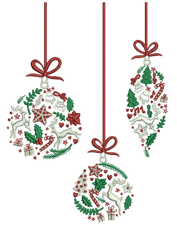 Ornate Christmas Ornaments With Stars and Reindeer Filled Machine Embroidery Design Digitized Pattern