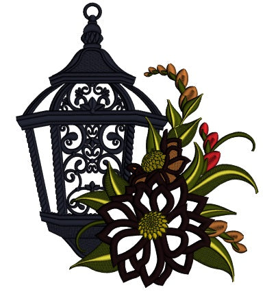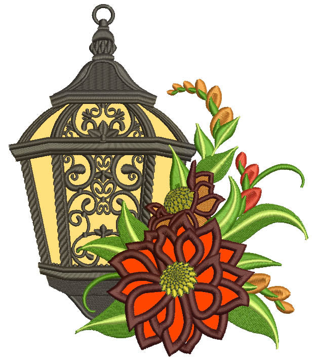 Ornate Lantern With Flowers Applique Machine Embroidery Design Digitized Pattern