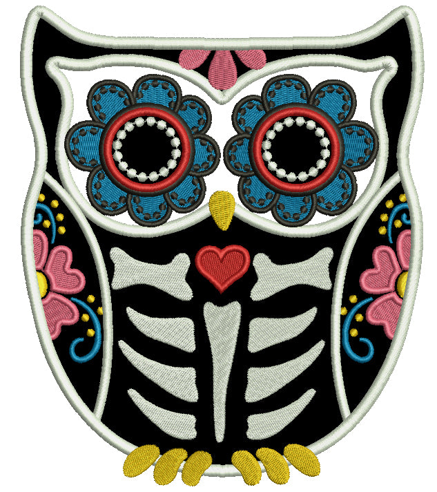 Ornate Sugar Skull Owl Applique Machine Embroidery Design Digitized Pattern