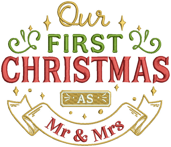 Our First Mr And Mrs Christmas Filled Machine Embroidery Design Digitized Pattern