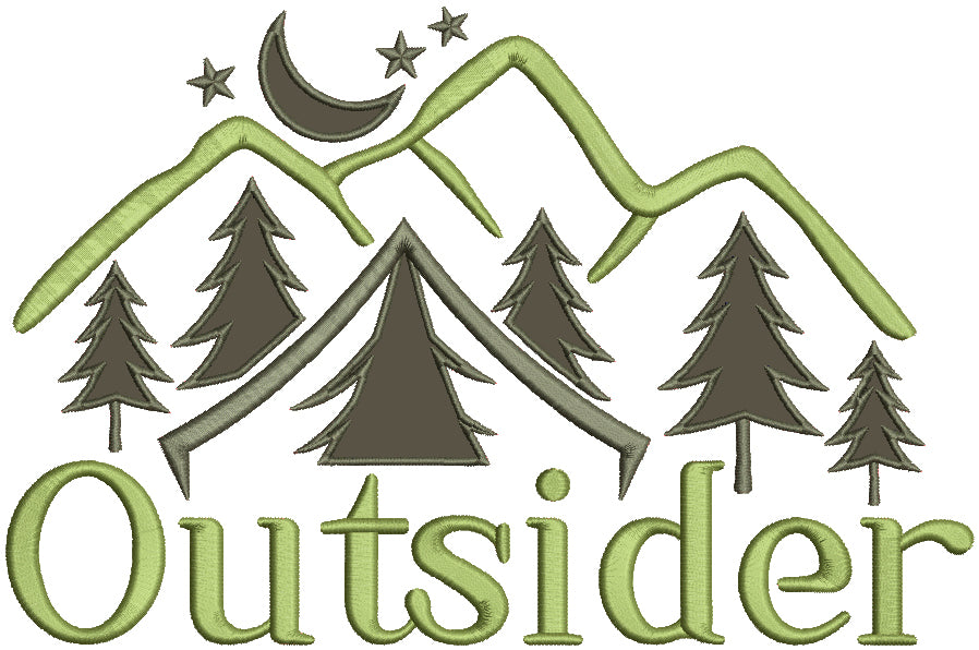 Outsider Mountains And Trees Applique Machine Embroidery Design Digitized Pattern