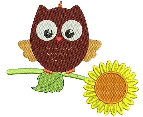 Owl Sitting on Sunflower Filled Machine Embroidery Design Digitized Pattern