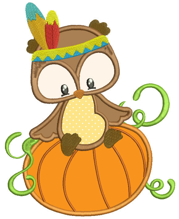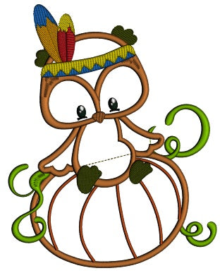 Owl That Looks Like Indian Sitting on a Pumpkin Thanksgiving Applique Machine Embroidery Digitized Design Pattern