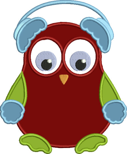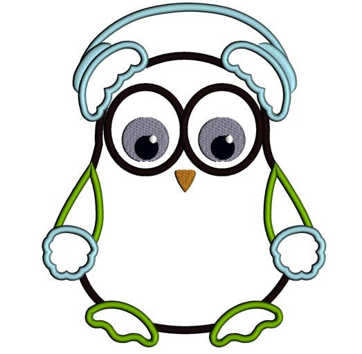 Owl wearing Earmuffs Christmas Applique Machine Embroidery Digitized Design Pattern