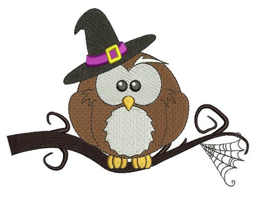 Owl wearing witch hat Halloween Machine Embroidery Digitized Filled Pattern - Instant Download - 4x4 , 5x7, 6x10