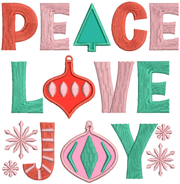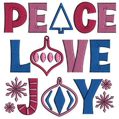Peace Love Joy Christmas Applique Machine Embroidery Design Digitized Pattern