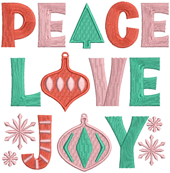 Peace Love Joy Christmas Filled Machine Embroidery Design Digitized Pattern