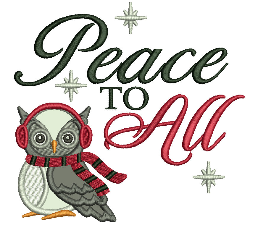 Peace To All Winter Owl Christmas Applique Machine Embroidery Design Digitized Pattern