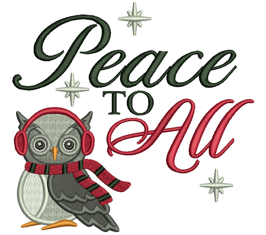 Peace To All Winter Owl Christmas Filled Machine Embroidery Design Digitized Pattern