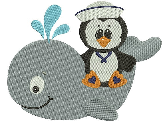 Penguin on a Whale Filled Machine Embroidery Digitized Design Pattern