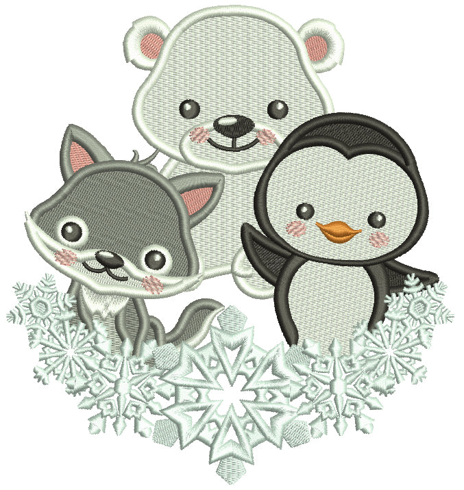Penguin Polar Bear and a Fox Christmas Filled Machine Embroidery Design Digitized Pattern