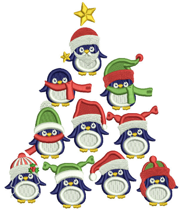 Penguins Christmas Tree Filled Machine Embroidery Design Digitized Pattern