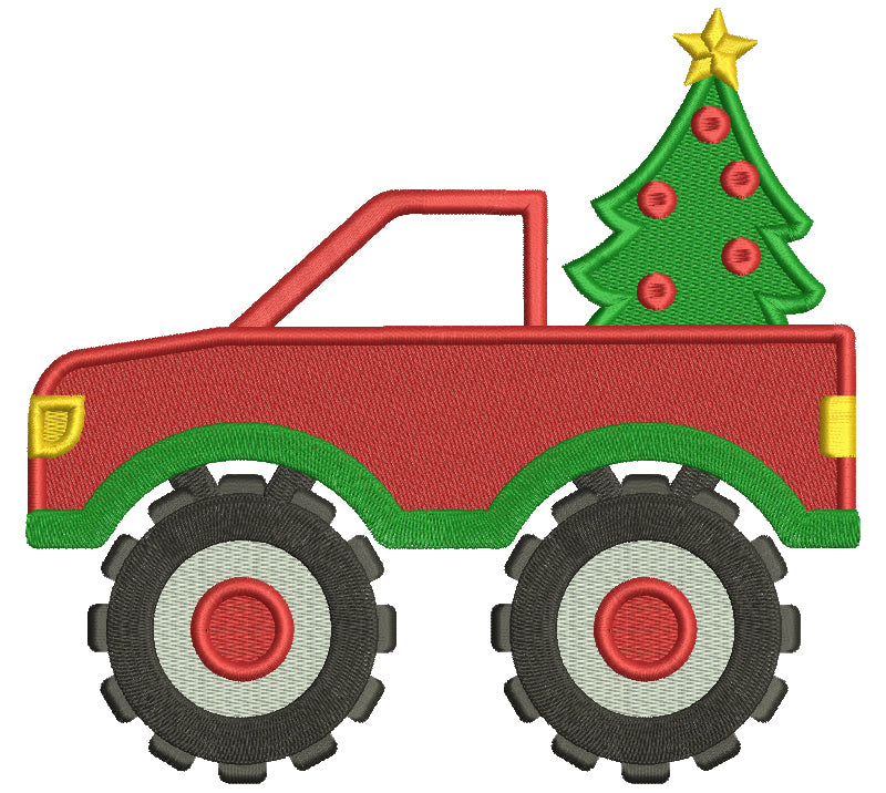 Pick Up Truck With Huge Wheels And Christmas Tree Filled Machine Embroidery Design Digitized Pattern