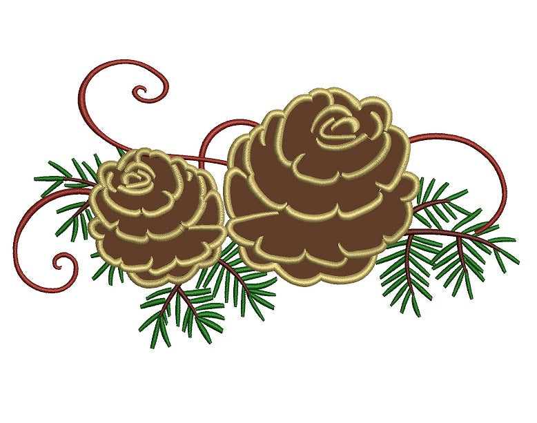 Pine Cone Christmas Applique Machine Embroidery Digitized Design Pattern