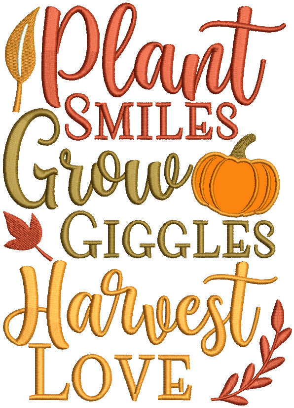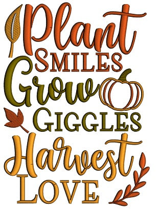 Plant Smiles Grow Giggles Harvest Love Thanksgiving Applique Machine Embroidery Design Digitized Pattern