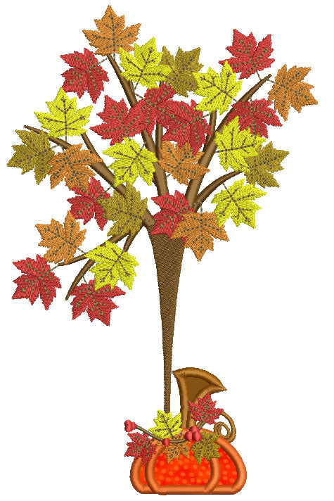 Pumpkin and a Tree Fall Applique Machine Embroidery Digitized Design Pattern