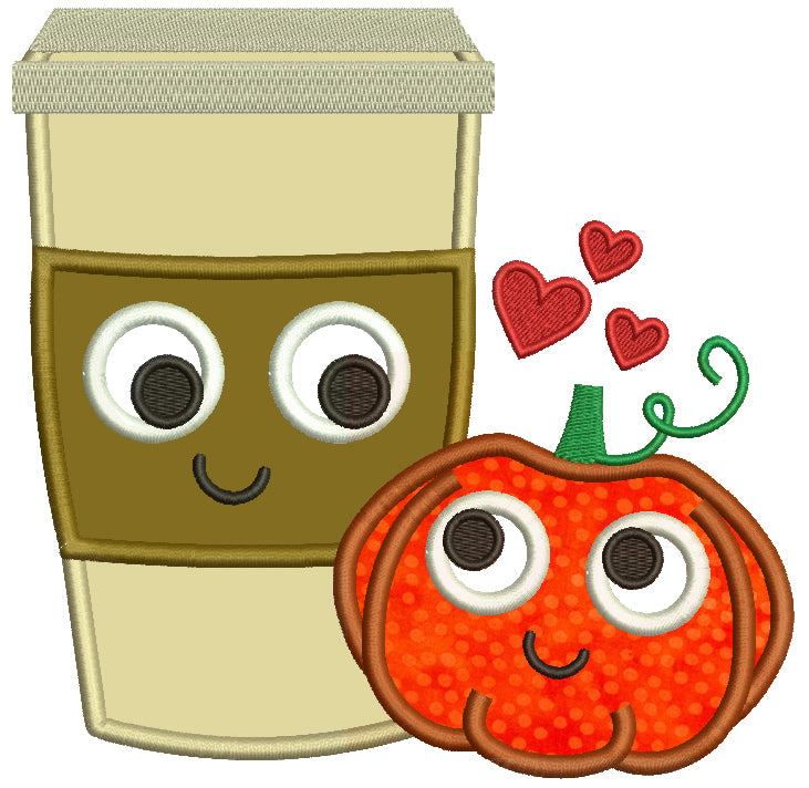 Pumpkin and Coffee Cup Applique Machine Embroidery Digitized Design Pattern