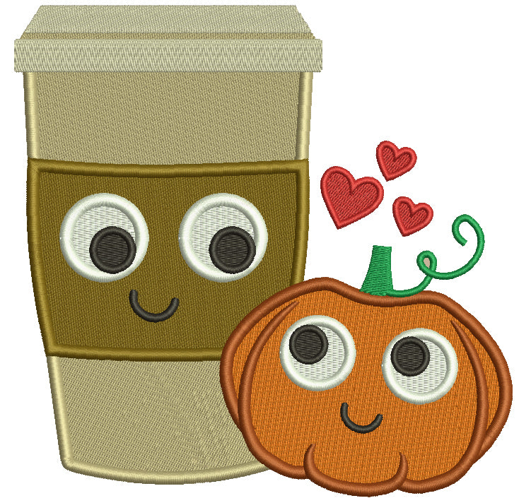 Pumpkin and Coffee Cup Filled Machine Embroidery Digitized Design Pattern