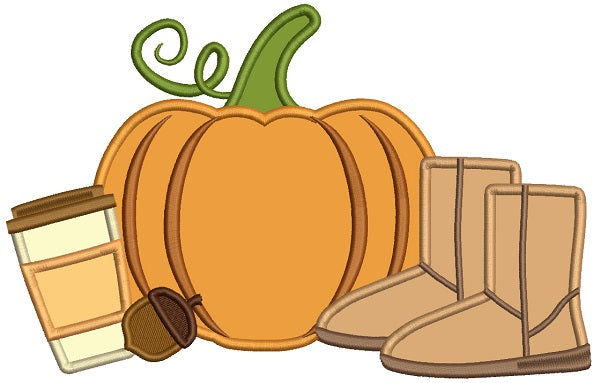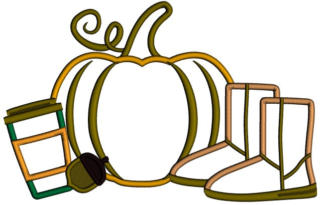 Pumpkin Coffee And Boots Fall Thanksgiving Applique Machine Embroidery Design Digitized Pattern