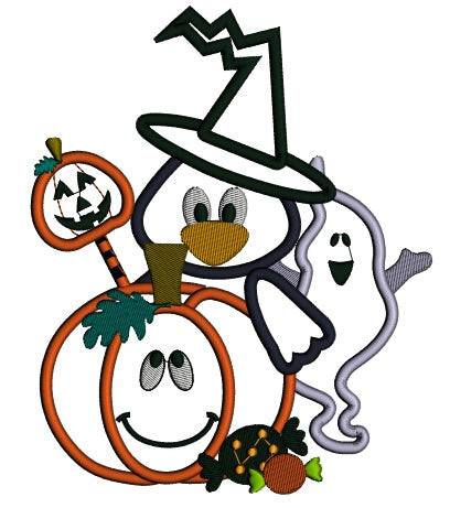 Pumpkin Ghost and Crow Halloween Applique Machine Embroidery Design Digitized Pattern