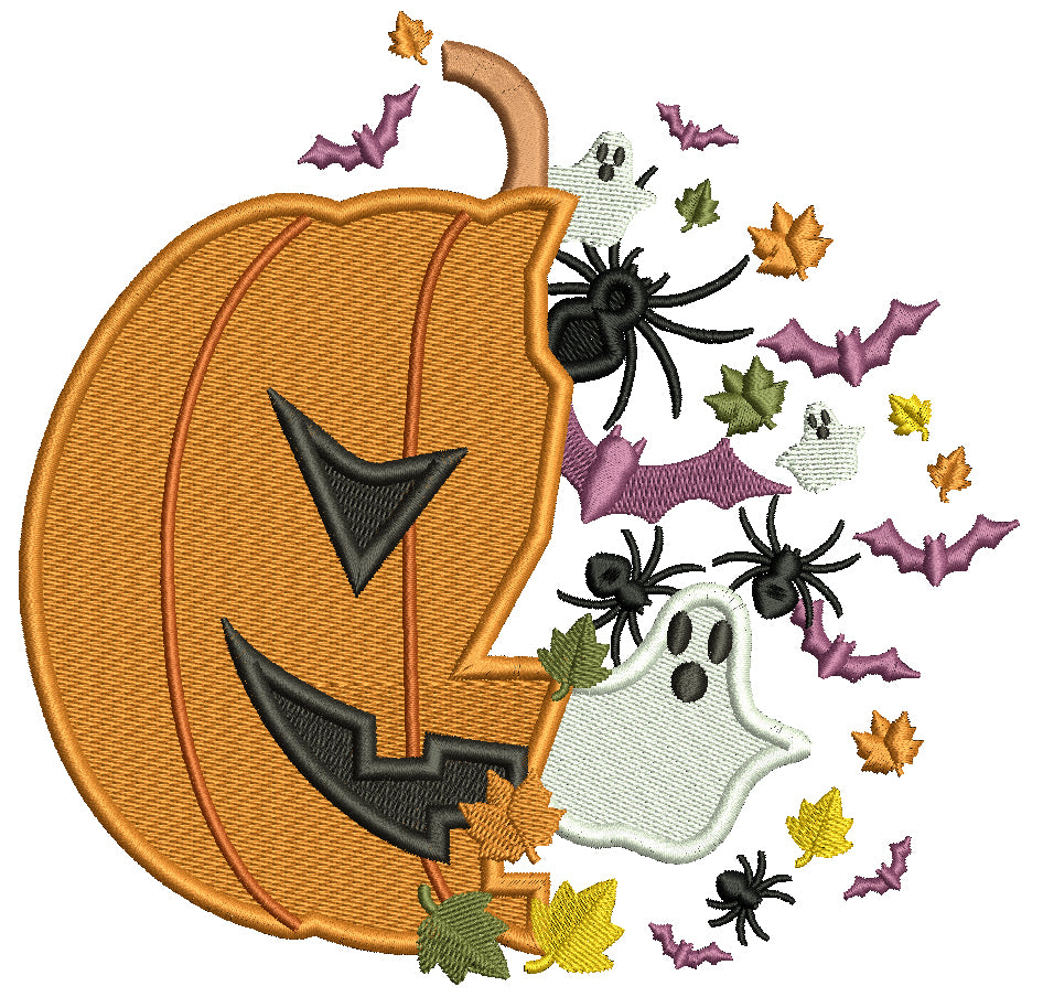 Pumpkin Ghosts And Spiders Halloween Filled Machine Embroidery Design Digitized Pattern