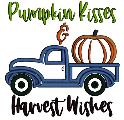 Pumpkin Kisses And Harvest Wishes Truck Thanksgiving Applique Machine Embroidery Design Digitized Pattern