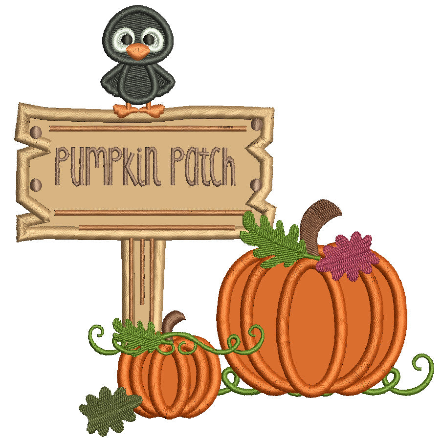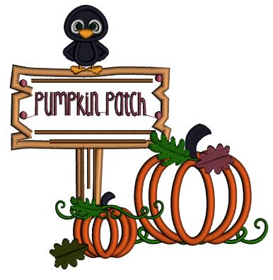 Pumpkin Patch Little Crow Sitting on the Sign Halloween Applique Machine Embroidery Design Digitized Pattern