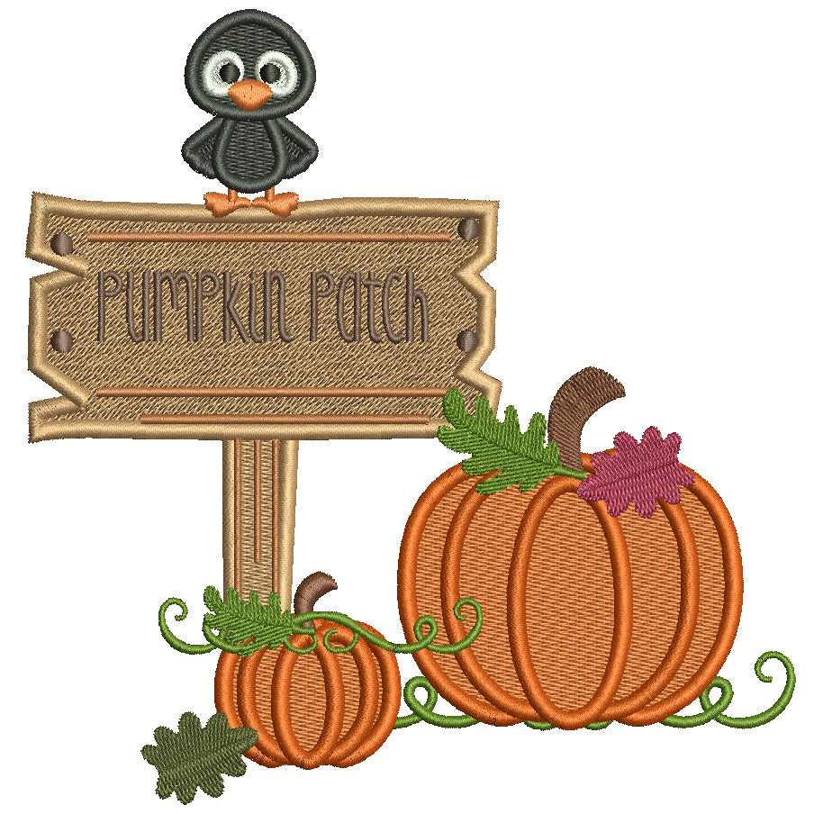 Pumpkin Patch Little Crow Sitting on the Sign Halloween Filled Machine Embroidery Design Digitized Pattern