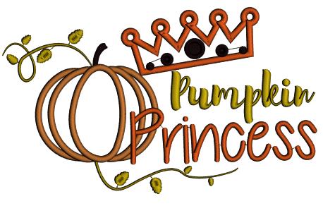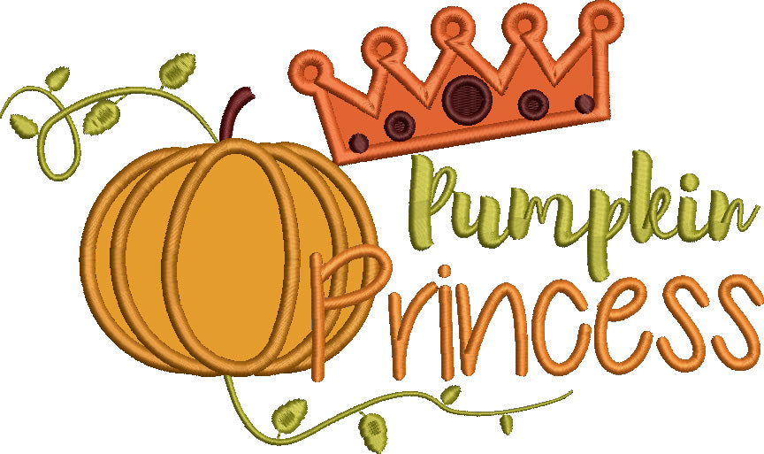 Pumpkin Princess Crown Fall Applique Machine Embroidery Design Digitized Pattern