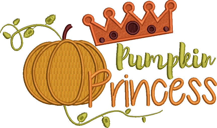 Pumpkin Princess Crown Fall Filled Machine Embroidery Design Digitized Pattern