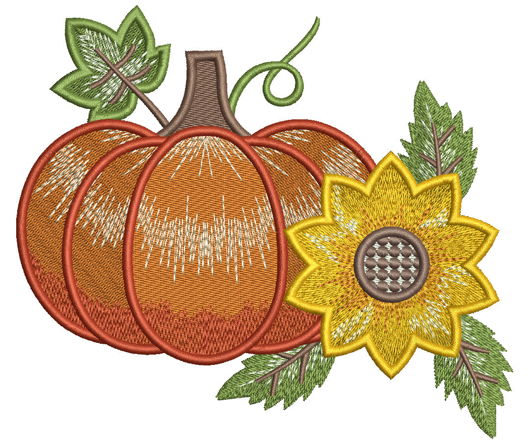 Pumpkin with Flower and Leaves Fall Filled Machine Embroidery Design Digitized Pattern
