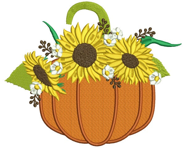 Pumpkins With Sunflowers Thanksgiving Filled Machine Embroidery Design Digitized Pattern