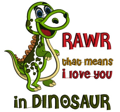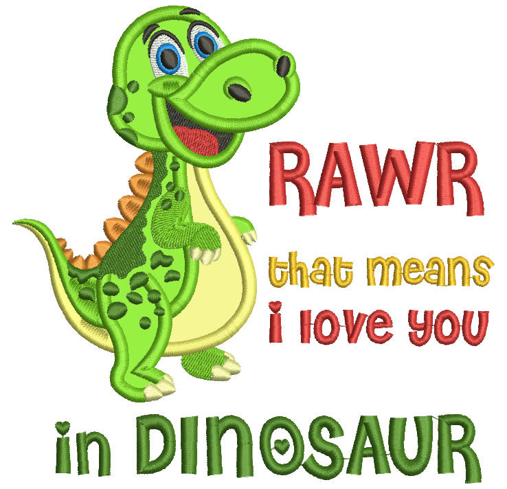 Rawr That Means I Love You in Dinosaur Applique Machine Embroidery Digitized Design Pattern