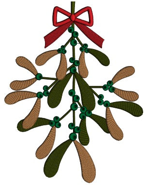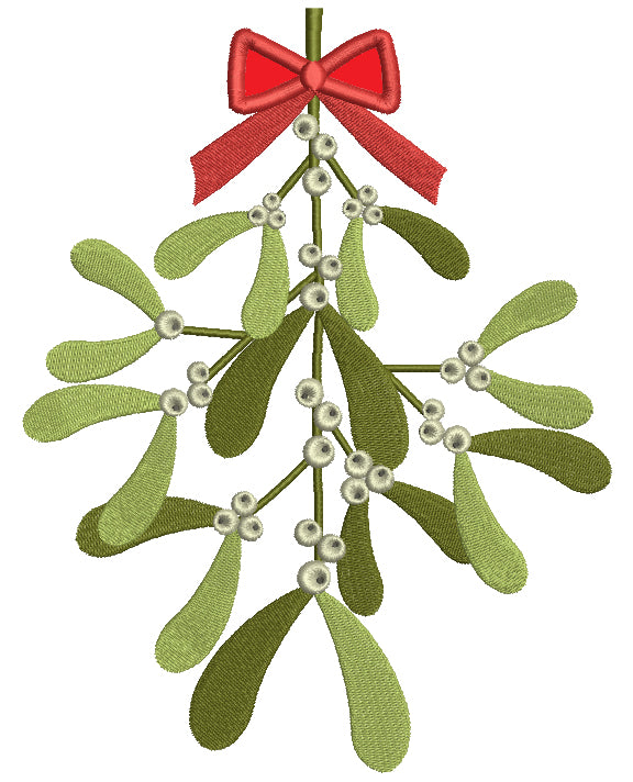 Red Bow on a Branch Christmas Applique Machine Embroidery Digitized Design Pattern