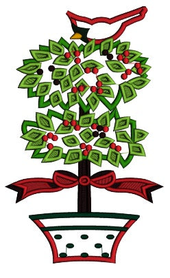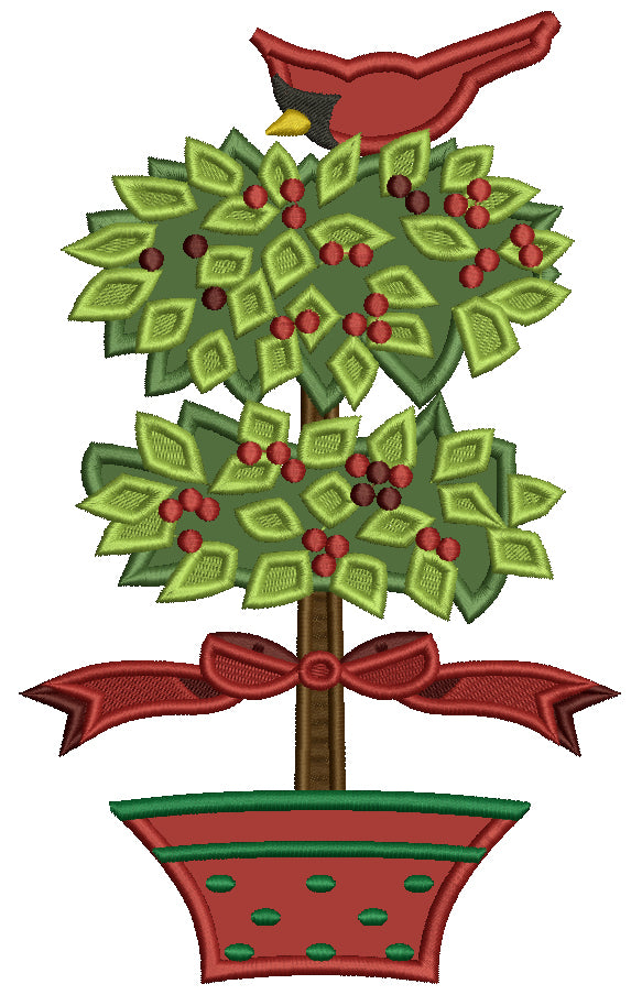 Red Cardinal Sitting on a Tree Christmas Applique Machine Embroidery Design Digitized Pattern
