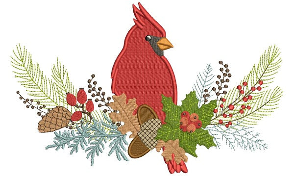 Red Robin Sitting On a Branch Winter Christmas Filled Machine Embroidery Design Digitized Pattern