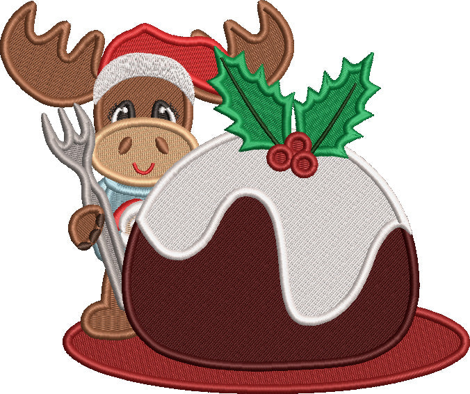 Reindeer Holding a Fork And Eating a Cake Christmas Filled Machine Embroidery Design Digitized Pattern