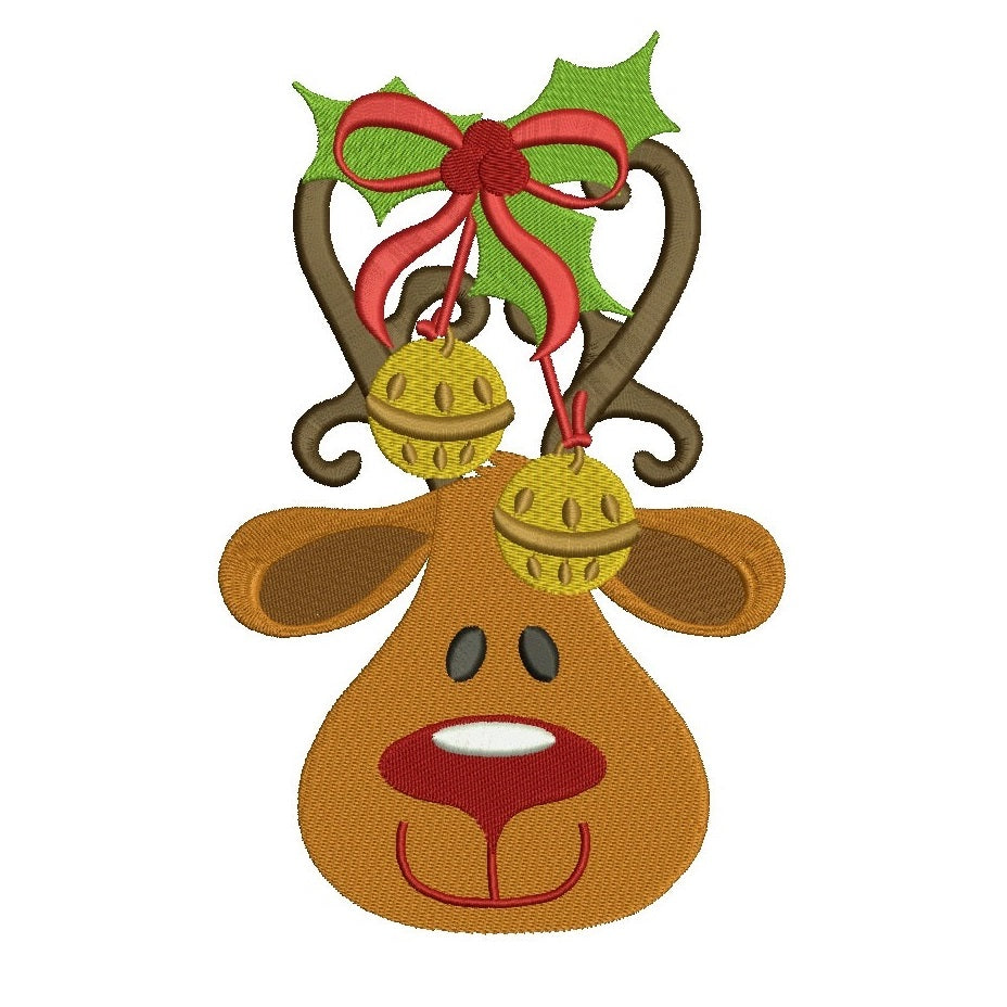 Reindeer Rudolph Red Nose Christmas Filled Embroidery Digitized Design Pattern