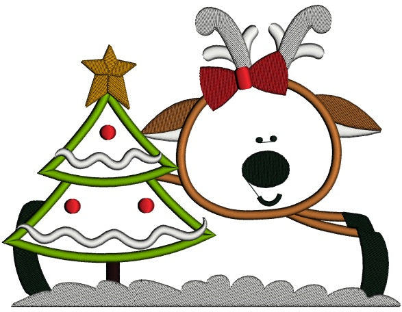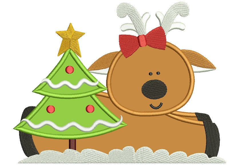 Reindeer With Christmas Tree Applique Machine Embroidery Design Digitized Pattern
