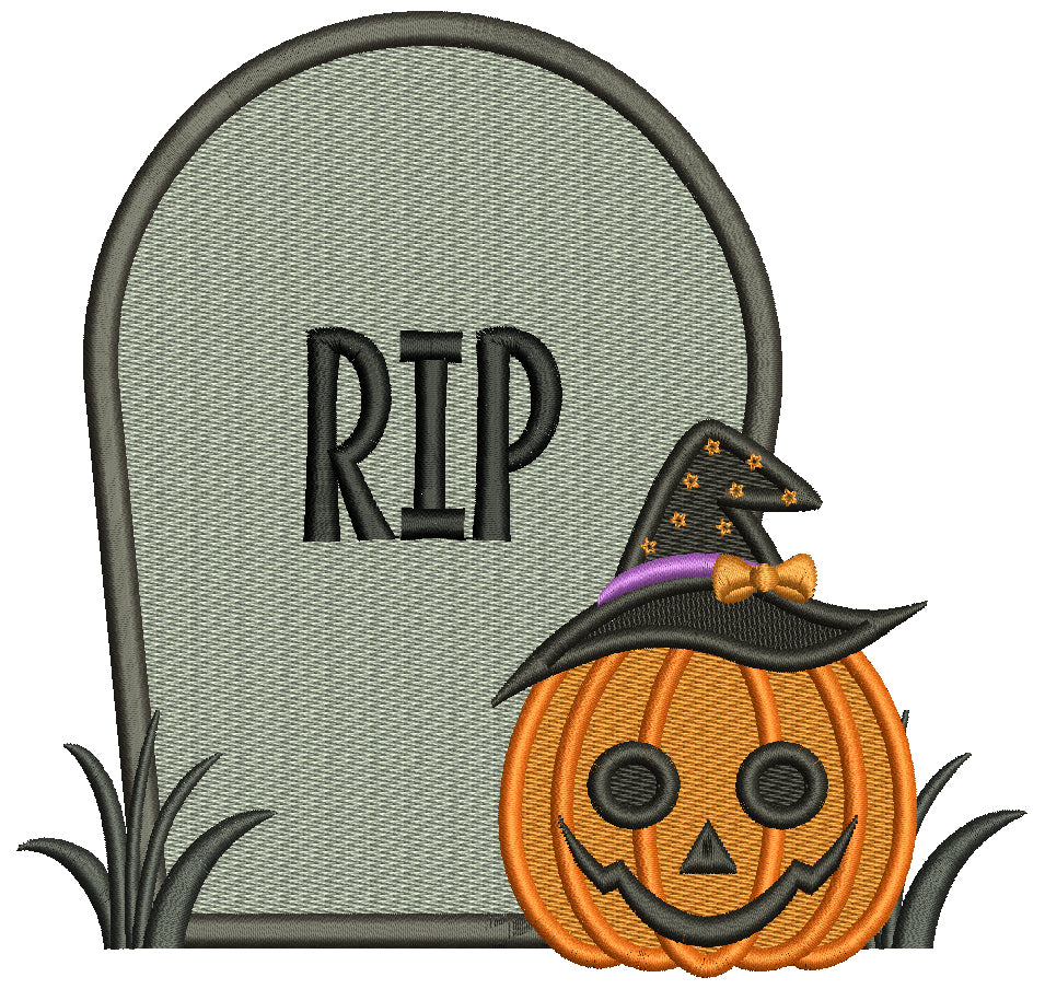 RIP Halloween Pumpkin Wearing WItch Hat Filled Machine Embroidery Design Digitized Pattern