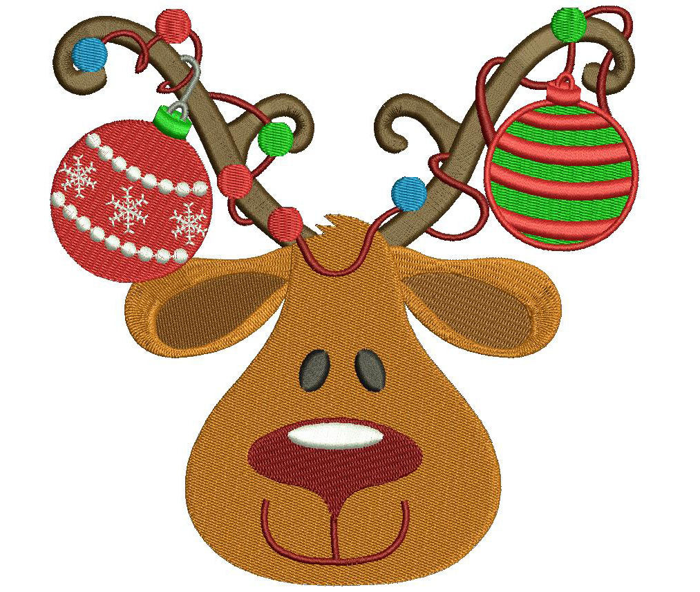 Rudolph Red Nose Reindeer Christmas Filled Machine Embroidery Digitized Design Pattern