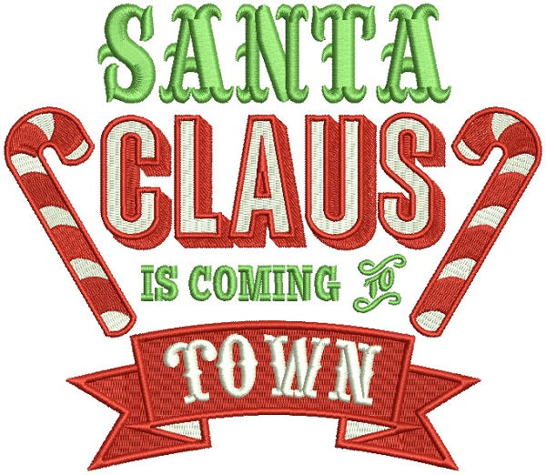 Santa Claus Is Coming To Town Candy Cane Banner Christmas Filled Machine Embroidery Design Digitized Pattern
